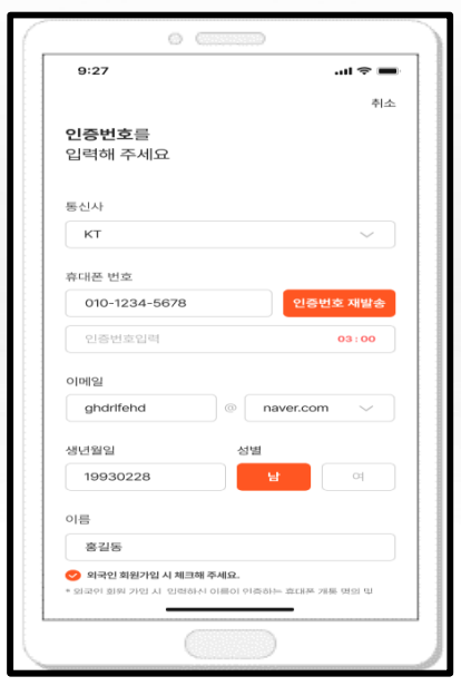 회원가입 : 약관동의, 본인인증, 생체인증 등록