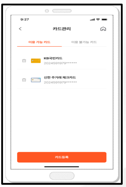 ✅ 등록 불가 카드 : 기업카드, 법인카드, 기프트카드, 가족카드, 특수목적카드(바우처/지역화폐/보조금전용카드 등) 및 참여 카드사별 기준에 다른 일부 카드