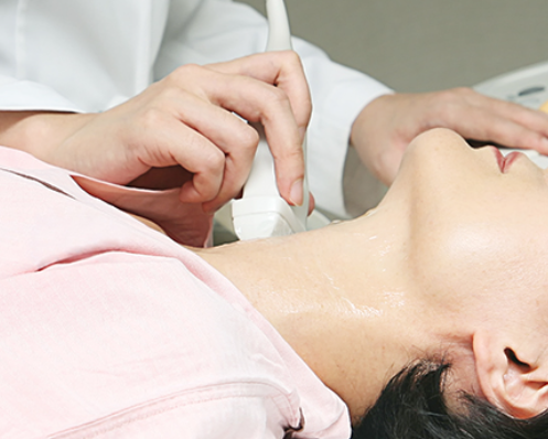 갑상선기능저하증 검사는 처음에는 촉진을 통해 갑상선 결절의 크기나 촉감, 대칭성 등을 관찰합니다.